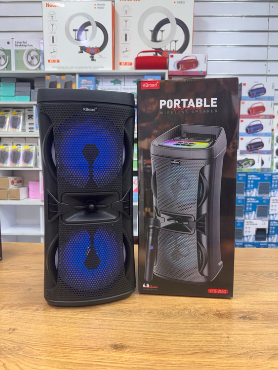 اسپیکر KTS-2160 با دو ساب ۶٫۵ اینچی، نورپردازی RGB و میکروفون بیسیم، گزینهای عالی برای مهمانیها و کارائوکه خانگی است. پشتیبانی از بلوتوث، USB، کارت حافظه و AUX، همراه با قابلیت TWS، تجربهای کامل از موسیقی و صدای استریو ارائه میدهد و طراحی قابل حمل آن استفاده در فضاهای مختلف را آسان میکند.