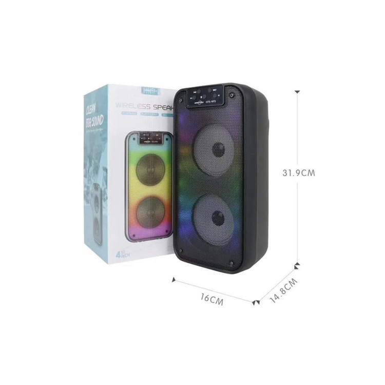 اسپیکر GTS-1873 با دو درایور ۴ اینچی، نورپردازی RGB و قابلیت TWS، انتخابی مناسب برای مهمانیها و استفاده خانگی است. پشتیبانی از بلوتوث، USB، کارت حافظه و AUX تجربهای کامل از موسیقی و صدای استریو ارائه میدهد و طراحی جمعوجور آن حمل دستگاه را آسان میکند.