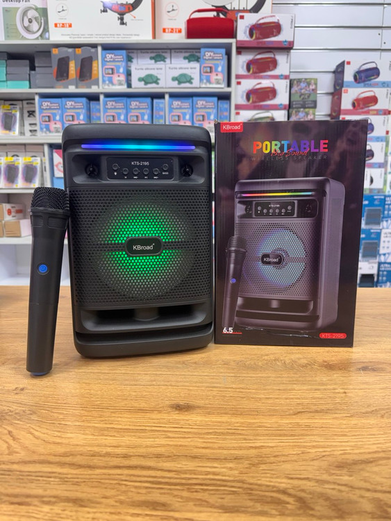 اسپیکر KTS-2195 با درایور ۶.۵ اینچی، نورپردازی RGB و قابلیت TWS، گزینهای عالی برای مهمانیها و کارائوکه خانگی است. پشتیبانی از بلوتوث، USB، کارت حافظه و AUX، همراه با ریموت کنترل و طراحی مقاوم و قابل حمل، تجربهای کامل از موسیقی و صدای استریو ارائه میدهد.