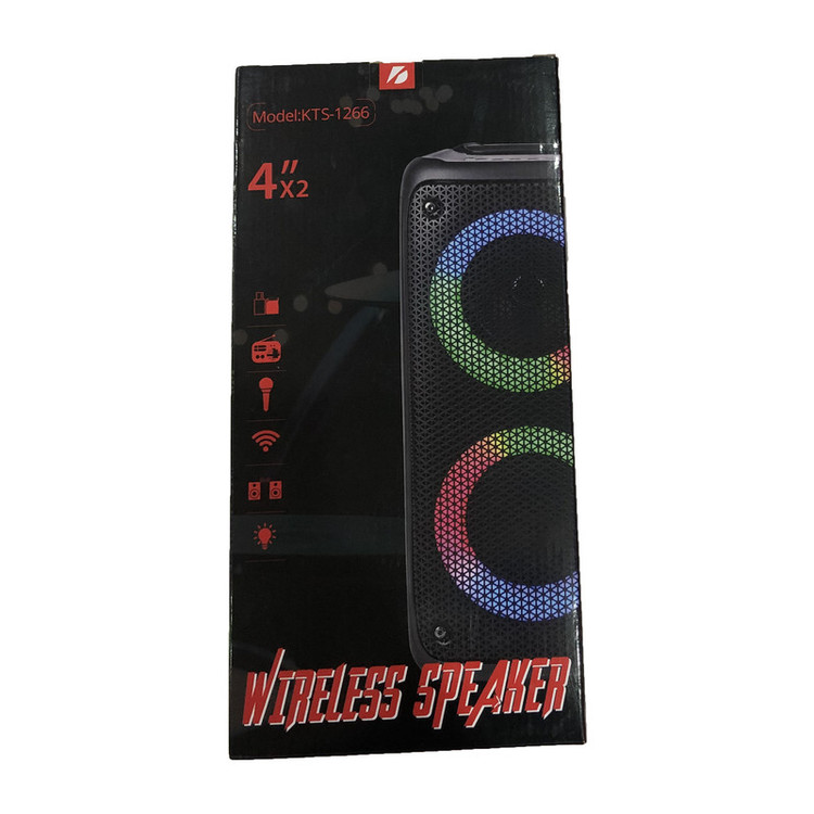 اسپیکر KTS-1266 با دو درایور ۴ اینچی، توان خروجی ۲۰ وات و نورپردازی RGB، انتخابی عالی برای مهمانیها و کارائوکه خانگی است. پشتیبانی از بلوتوث، USB، کارت حافظه و AUX، همراه با قابلیت TWS و طراحی مقاوم، تجربهای کامل از موسیقی و صدای استریو ارائه میدهد.