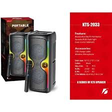 اسپیکر KTS-2033 با دو درایور ۴ اینچی و توان خروجی ۱۲ وات، گزینهای مناسب برای استفاده خانگی و مهمانیهای کوچک است. پشتیبانی از بلوتوث، USB، کارت حافظه و AUX، همراه با نورپردازی RGB و طراحی قابل حمل، تجربهای کامل از موسیقی و صدای شفاف ارائه میدهد.