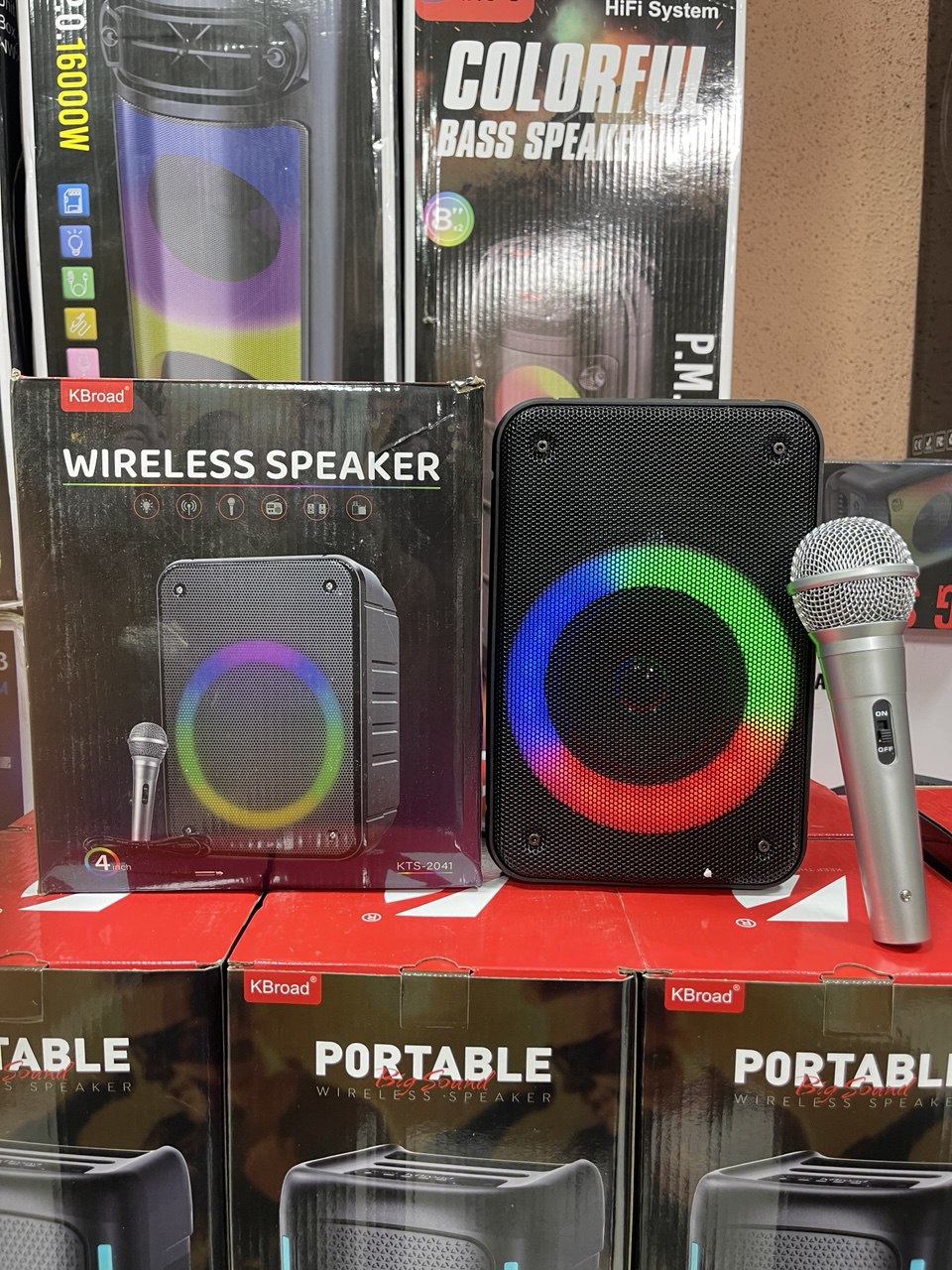 اسپیکر KTS-2041 با توان خروجی ۱۵ وات و درایور ۴ اینچی، گزینهای مناسب برای استفاده خانگی و مهمانیهای کوچک است. پشتیبانی از بلوتوث، USB، کارت حافظه و AUX، همراه با نورپردازی RGB و ورودی میکروفون، تجربهای کامل از موسیقی و کارائوکه ارائه میدهد و حمل آن آسان است.