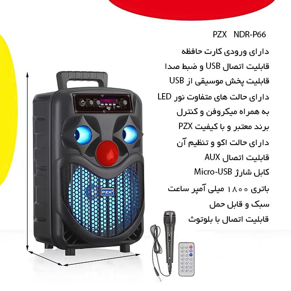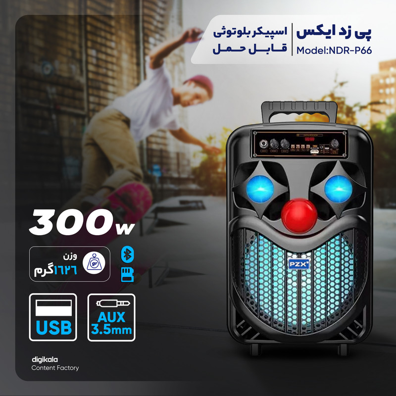 اسپیکر بلوتوثی قابل حمل پی زد ایکس مدل NDR-P66 به همراه میکروفن