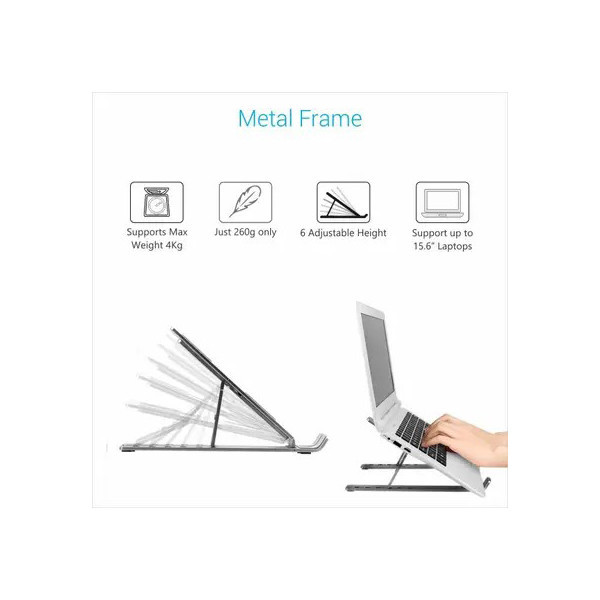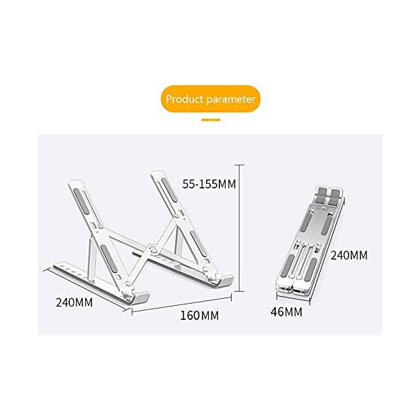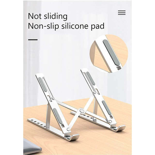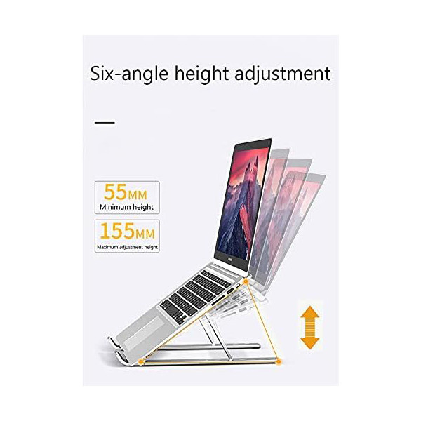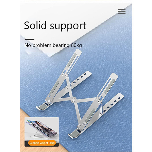 (پایه لپتاپ) پایه لپتاپ خلاقانه از جنس آلیاژ آلومینیوم و استیلN3، قابلیت تنظیم ارتفاع در 6 سطح، نگهدارنده لپتاپ کاملاً تاشو، مناسب برای لپتاپها و تبلتهای 10 تا 15.6 اینچی مکبوک ایر پرو، اچپی، اینوو، دل و غیره می باشد.