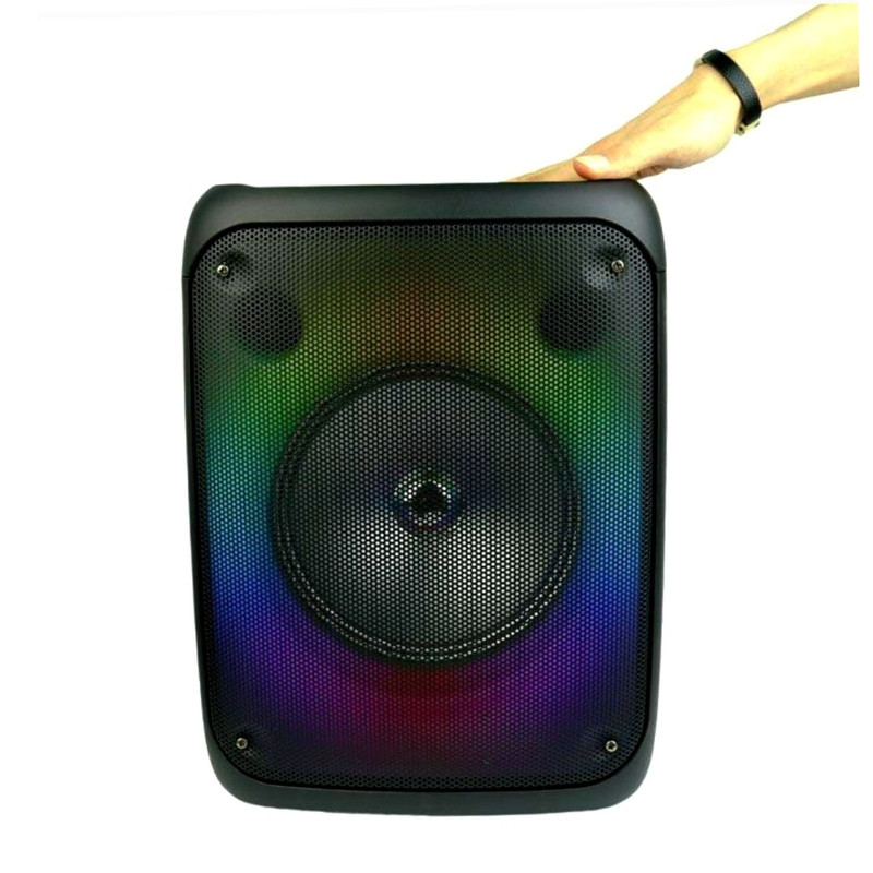 اسپیکر بی سیم قابل حمل مدل KTS-1579 مدت زمان شارژدهی در حالت پخش موسیقی حدود 1 الی 2 ساعت با میزان صدای 75 درصدی و مدت زمان مورد نیاز برای شارژ شدن حدود 3 ساعت بهرمندی از ورودی میکروفون جهت اتصال میکروفون، حساسیت سیگنال به نویز 80 دسی بل و حداکثر حافظه قابل پشتیبانی 32 گیگابایت پشتیبانی از فلش مموری USB و رم میکرو SD، رادیو FM برای علاقمندان به رادیو و… دارای نورپردازی داخلی جهت ایجاد جلوه بصری زیبا مجهز به درایو 8 اینچ جهت پخش صدای واضح و شفاف، توان خروجی کلی 20 وات و پاسخ فرکانسی 100 هرتز الی 20 کیلوهرتز برخودار از کلید های فیزیکی جهت مدیریتی موسیقی، تنظیم ولوم و… وجود شیار در نزدیکی دسته جهت قرار دادن تلفن همراه تامین انرژی از طریق باتری داخلی با ظرفیت 2400 میلی آمپر ساعت و امکان شارژ مجدد از طریق کابل میکرو یو اس بی امکان اتصال بی سیم از طریق بلوتوث با برد اتصال 10 متری و اتصال با سیم از طریق رابط جک 3٫5 میلی متری صدا دارای بدنه ای مقاوم در برابر ضربه و فشار از جنس پلاستیک، مجهز به دسته جهت حمل آسان تر