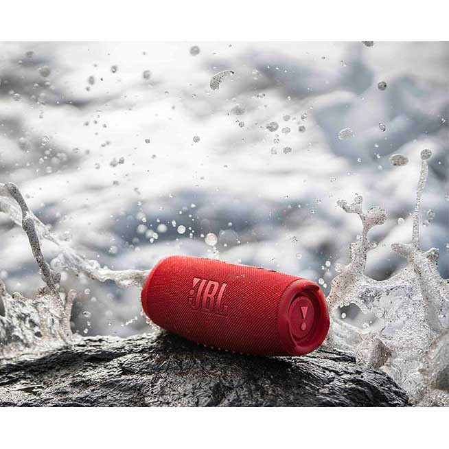 اسپیکر پرتابل و بلوتوثی JBL Charge 5 نسل جدید اسپیکر های سری شارژ از برند محبوب جی بی ال است. این اسپیکر قابل حمل با درایور های بهبود یافته و سخت افزار بروز شده ، تجربهی صوتی متفاوتی را به شما ارائه می دهد. همچنین طراحی ظاهری زیبا و چشمگیر آن همراه با بدنهی ضدآب و مقاوم ، شما را با سطح جدیدی از سیستم های صوتی پرتابل آشنا می کند. دلیل نامگذاری این اسپیکر ظرفیت بالای باتری و امکان شارژ دستگاه های دیگر توسط باتری اسپیکر است همچنین برای اتصال این اسپیکر به دستگاه های پخش مانند گوشی موبایل یا پلیر ها ، از تکنولوژی بلوتوث استفاده شده است تا بتوانید به راحتی به این اسپیکر متصل شده و به صورت بی سیم موسیقی مورد علاقه خود را بشنوید. جی بی ال در سری جدید اسپیکر شارژ از بلوتوث نسخه 5.1 که جدید ترین نسخه در حال حاضر است استفاده کرده است و این اسپیکر حرفهای دارای صدای قدرتمند و شفافی است که توسط درایور های جدید و بهبود یافته تولید و پخش می شود. یک عدد ووفر Racetrack-Shaped به همراه توئیتر جداگانه و پسیو رادیاتور های دوگانه در کنار هم تجربهی صوتی جدید و بی نظیری را برای شما فراهم می کنند و فرکانس های بیس و میدرنج (Low - Mid) در این اسپیکر از طریق 1 عدد ووفر 52×90 میلی متری با توان خروجی 30 وات RMS و فرکانس های تریبل (High) نیز توسط 1 عدد توئیتر 20 میلی متری با توان خروجی 10 وات RMS پخش می شوند. در مجموه این محصول قادر است تا صدایی به قدرت 40 وات RMS را تولید کرده و به گوش شما برساند. بازه فرکانسی قابل پخش در این سیستم صوتی مابین 65 هرتز تا 20000 هرتز است که برای اسپیکری با این ابعاد فوق العاده است. اسپیکر Charge 5 یکی از محصولاتی است که واژهی JBL Pro Sound را به تصویر می کشد.