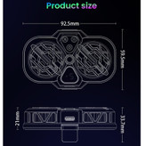 خنک کننده تلفن دوگانه K11 برای بازی از جدیدترین فناوری نیمه هادی پیشرفته استفاده می کند که می تواند دستگاه های شما را فورا خنک کند و دستگاه تلفن همراه شما را در دمای مطلوب بدون کم نور شدن صفحه نمایش، یخ زدن یا خاموش شدن خودکار به دلیل دمای بالا نگه دارد و از آن جلوگیری کند. این فن رادیاتوری خنک کننده توربو علاوه بر داشتن بدنه با کیفیت، هیت سینک و فن قدرتمند، دارای طراحی جذاب و منحصربفردیست. چراغ RGB به کار رفته در فن این محصول جلوهی بسیار زیبایی به گوشی موبایل شما میبخشد. چراغ های RGB مخصوص تجهیزات گیمینگ این روز ها یکی از ویژگی های حائز اهمیت آن ها میباشد. روی این فن خنک کننده یک نمایشگر دیجیتال تعبیه شده تا دمای بدنهی موبایل را به شما نمایش دهد. صفحه نمایش دما به شما کمک میکند تا بتوانید در حین بازی دمای موبایل خود را مشاهده کنید. این دستگاه دارای دو فن خنک کننده قدرتمند و سریع است. این خنک کننده به 3 سرعت خنک کننده قابل تنظیم به شما امکان می دهد اثر خنک کننده را بر اساس نیازهای تلفن تنظیم کنید. این خنک کننده گوشی دارای گیره است که به شما امکان می دهد به راحتی آن را در پشت گوشی خود نصب کنید. با استفاده از کابل Type-C، به هنگام فعالیت هایی همچون ضبط محتوای ویدئویی می توانید همزمان تلفن همراه خود را به پایه نگه دارنده اتصال دهید و همواره با استفاده از رادیاتور خنک کننده آن را خنک نگه دارید. دارای کلید خاموش/ روشن ,کلید افزایش/کاهش سرعت فن و کلید تنظیم نور RGB خنک کننده با دو فن قدرتمند دارای هیت سینک نمایش لحظه ای دما با نمایشگر دیجیتال سطح تماس بالا با پشت بدنهی موبایل چراغ RGB بسیار جذاب قابل استفاده با پایه عدم ایجاد خط و خش روی موبایل کاهش دمای سریع و و پایدار سبک و قابل حمل
