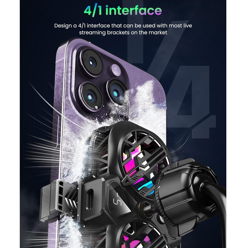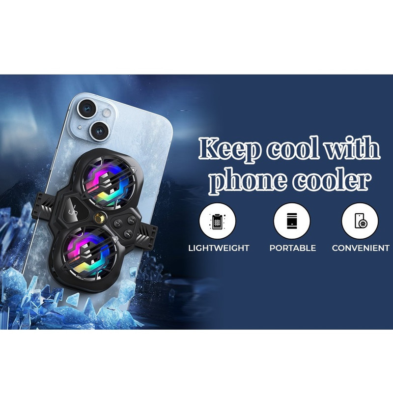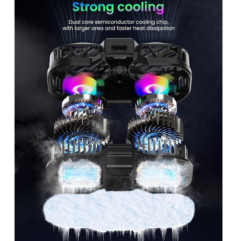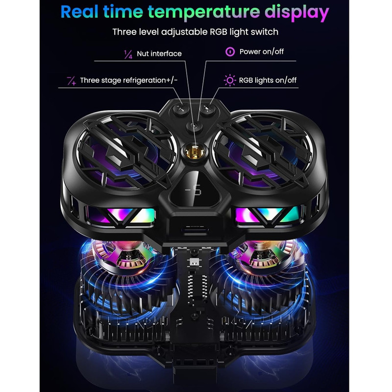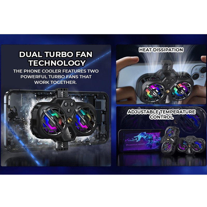 خنک کننده تلفن دوگانه K11 برای بازی از جدیدترین فناوری نیمه هادی پیشرفته استفاده می کند که می تواند دستگاه های شما را فورا خنک کند و دستگاه تلفن همراه شما را در دمای مطلوب بدون کم نور شدن صفحه نمایش، یخ زدن یا خاموش شدن خودکار به دلیل دمای بالا نگه دارد و از آن جلوگیری کند. این فن رادیاتوری خنک کننده توربو علاوه بر داشتن بدنه با کیفیت، هیت سینک و فن قدرتمند، دارای طراحی جذاب و منحصربفردیست. چراغ RGB به کار رفته در فن این محصول جلوهی بسیار زیبایی به گوشی موبایل شما میبخشد. چراغ های RGB مخصوص تجهیزات گیمینگ این روز ها یکی از ویژگی های حائز اهمیت آن ها میباشد. روی این فن خنک کننده یک نمایشگر دیجیتال تعبیه شده تا دمای بدنهی موبایل را به شما نمایش دهد. صفحه نمایش دما به شما کمک میکند تا بتوانید در حین بازی دمای موبایل خود را مشاهده کنید. این دستگاه دارای دو فن خنک کننده قدرتمند و سریع است. این خنک کننده به 3 سرعت خنک کننده قابل تنظیم به شما امکان می دهد اثر خنک کننده را بر اساس نیازهای تلفن تنظیم کنید. این خنک کننده گوشی دارای گیره است که به شما امکان می دهد به راحتی آن را در پشت گوشی خود نصب کنید. با استفاده از کابل Type-C، به هنگام فعالیت هایی همچون ضبط محتوای ویدئویی می توانید همزمان تلفن همراه خود را به پایه نگه دارنده اتصال دهید و همواره با استفاده از رادیاتور خنک کننده آن را خنک نگه دارید. دارای کلید خاموش/ روشن ,کلید افزایش/کاهش سرعت فن و کلید تنظیم نور RGB خنک کننده با دو فن قدرتمند دارای هیت سینک نمایش لحظه ای دما با نمایشگر دیجیتال سطح تماس بالا با پشت بدنهی موبایل چراغ RGB بسیار جذاب قابل استفاده با پایه عدم ایجاد خط و خش روی موبایل کاهش دمای سریع و و پایدار سبک و قابل حمل