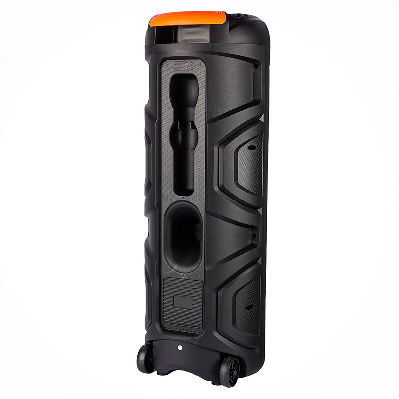 خروجی کلی 60 وات(30W×2)، اتصال بی سیم از طریق بلوتوث و با سیم توسط جک 3.5 میلی متری پخش فایل های ذخیره شده با پشتیبانی از فلش مموری USB و کارت حافظه MicroSD، برخورداری از یک عدد ورودی میکروفون بدنه ساخته شده از جنس پلاستیک و فلز مقاوم، حمل آسان توسط دسته و چرخ، مجهز به هولدر میکروفون و استند موبایل تامین انرژی توسط باتری داخلی به ظرفیت 6000 میلی آمپر، امکان شارژ مجدد از طریق درگاه سوزنی و آداپتور همراه دارای نمایشگر LED جهت اطلاع از وضعیت کارکرد، امکان دریافت امواج FM برای دوستداران برنامه های رادیویی پشتیبانی از فناوری TWS جهت اتصال همزمان به دو یا چند دستگاه از 1 منبع بلوتوثی، دارای نورپردازی RGB برخورداری از کلید های فیزیکی به منظور مدیریت موسیقی، تنظیم ولوم، نورپردازی، اکو و ... محدوده پاسخ فرکانسی 45 هرتز الی 18 کیلوهرتز و نسبت سیگنال به نویز 50 دسی بل اقلام همراه محصول شامل یک عدد میکروفون، ریموت کنترل پشتیبانی از رادیو FM ، دارای نورپردازی جذاب ، حمل آسان توسط دسته و چرخ ، مجهز به هولدر میکروفون و استند موبایل ، قابلیت تولید صدای شفاف و باس عمیق ، مجهز به نشانگر LED جهت اطلاع از وضعیت کارکرد, نسخهی بلوتوث 5.0 ، مدت زمان پخش 4 تا 5 ساعت ،منبع انرژی برق 12 ولت ، میکروفون دارد