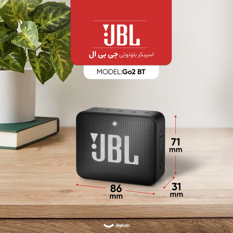 اسپیکر بلوتوثی جیبیال JBL GO 2 از سری محصولات تولید شده توسط کمپانی JBL است که به عنوان یک اسپیکر پرتابل روانه بازار شده است.این اسپیکر به دلیل وزن و حجم کم خود طرفداران بسیاری پیدا کرده است. JBL Go 2 نسبت به مدل قبلی خود تغییرات بسیار مثبتی داشته است و اولین تغییری که کاربران را متوجه خود خواهد کرد طراحی جدید و متفاوت آن است که زیبایی ظاهری این اسپیکر را دو چندان کرده است. از ویژگیهای این کالا میتوان کاملا مقاوم در برابر آب با استاندارد IPX7 ، قابلیت حمل آسان رنگبندی زیبا و جذاب بلوتوث نسخه 4 و 5 ساعت پخش مداوم دکمههای کنترل کننده؛ اتصال شارژر کاملا مقاوم در برابر آب با استاندارد IPX7 نام برد اسپیکر جیبیال JBL Go 2 دارای بدنهای مقاوم در برابر آب است. این اسپیکر به گونهای طراحی شده است تا شما بتوانید در عین حال که اسپیکر خود در آب غوطهور است، به پخش موسیقی بپردازید. همچنین امکان شستشوی این اسپیکر در هنگام کثیف شدن آن نیز برای شما فراهم شده است.این اسپیکر در اندازهای فشرده و کم حجم طراحی و تولید شده است تا شما بتوانید آن را در هر زمان، به هر مکان که مایل هستید منتقل کنید و از پخش موسیقی باکیفیت و شفاف لذت ببرید. در این اسپیکر کوچک یک عدد درایور فول رنج 1.5 اینچی با توان خروجی 3 وات استفاده شده است که قادر است فرکانسهای صدا را در بازه بین 180 هرتز تا 20000 هرتز پخش کند. کمپانی JBL برای اسپیکر بلوتوثی JBL GO 2 رنگهای متنوع و زیبایی در نظر گرفته است. بنابراین شما میتوانید این اسپیکر را در رنگهای متنوع و جذاب برای خود فراهم کنید. از روشهای اتصال به این اسپیکر بلوتوثی میتوان به روش باسیم و بیسیم اشاره کرد. برای اتصال به صورت باسیم میتوانید از ورودی 3.5 میلیمتری صدا و کابل AUX و برای اتصال بیسیم میتوان از بلوتوث تعبیه شده بر روی این دستگاه استفاده کرد. برای اتصال بیسیم با این دستگاه، تنها کافی است بلوتوث اسپیکر و منابع صوتی خود را روشن کنید و تنها با یک لمس ساده، به این اسپیکر متصل شوید و به پخش موسیقیهای باکیفیت خود بپردازید. این اسپیکر شارژی، انرژی خود را از طریق یک یک عدد باتری لیتیوم-یونی قابل شارژ با ظرفیت 730 میلی آمپر ساعت تامین میکند و با 2.5 ساعت شارژ قادر است تا 5 ساعت به صورت مداوم مورد استفاده قرار بگیرد