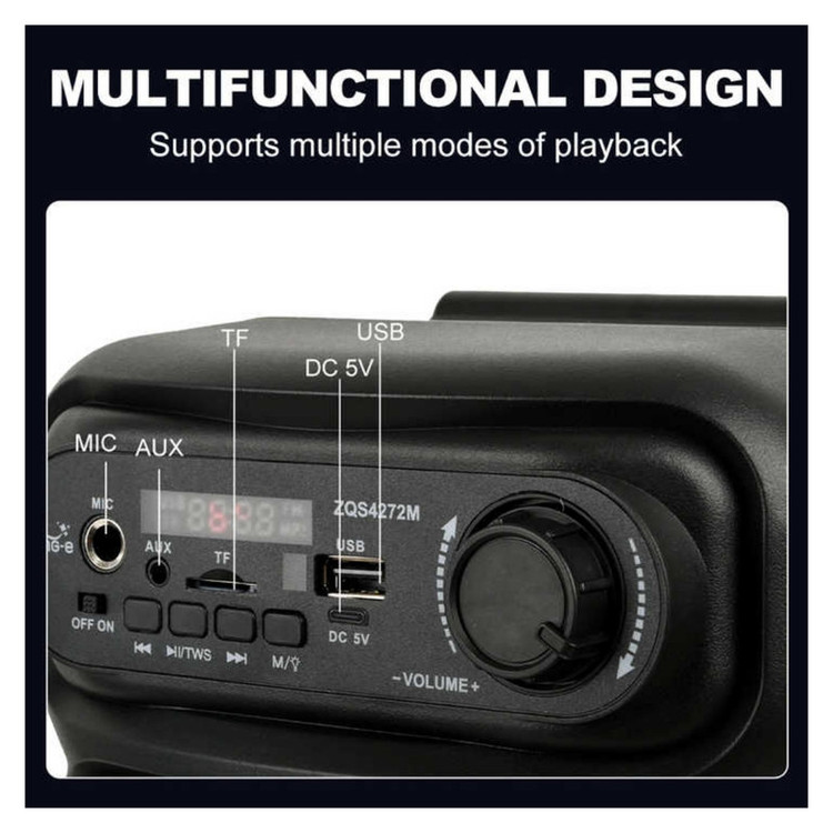 اسپیکر شارژی مدل zqs4272 یکی از پرفروش ترین محصولات شرکت zqs می باشد که طراحی ظاهری خاص و جذاب این اسپیکر او را ملقب به اسپیکر چشم دار کرده است.همانند مدل های قبلی اسپیکرهای zqs با اندازه مناسب تولید شده است و همین امر آن را به همراه همیشگی شما در هر مکانی تبدیل می کند .در هر کجا که دوست دارید با روشن کردن آن، از صدای عمیق و با کیفیت لذت ببرید. بلندگوهای جدید zqs با دقت طراحی شده اند تا تجربه واقعی صدای با کیفیت را به شما ارائه دهند. این اسپیکر ها با داشتن امکاناتی همچون رقص نور جذاب و قابل تغییر، رادیو و بلوتوث ،تمام محدودیتها را برای لذت بردن از صدای واقعی و دلنشین موسیقی از بین می برند. داشتن باتری با ماندگاری بالا (1500 میلی آمپر ) در اسپیکر های جدید برند zqs بدان معناست که ، بیشتر از آنچه تصورش را می کنید می توانید از بودن در محیطی شاد و گوش دادن به موسیقی با کیفیت صدایی دلنشین لذت ببرید. با اتصال دستگاه به موبایل از طریق بلوتوث می توان فایل های صوتی را ازدستگاه پخش کرد. این اسپیکر مناسب افرادیست که کاری جدید،شیک و باکیفیت را خواهان هستند.