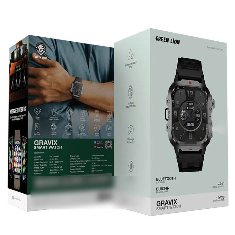 ساعت هوشمند گرین لاین مدل Gravix یکی از جدیدترین و کاملترین ساعتهای هوشمند این برند است که با ظاهری زیبا، امکانات غنی و تجربه کاربری روان طراحی شده تا نیازهای روزمره، ورزشی و ردیابی سلامت کاربران را به بهترین شکل پاسخ دهد. این ساعت با نمایشگر 2.01 اینچی IPS، رابط کاربری سهبعدی جذاب، پشتیبانی از دستیار صوتی هوشمند، شارژ وایرلس و مجموعهای کامل از قابلیتهای ردیابی فعالیتهای بدنی، گزینهای مناسب برای افرادی است که میخواهند هم سبک زندگی هوشمند داشته باشند و هم ظاهری شیک و جذاب برای مچ دست خود انتخاب کنند. این ساعت در عین طراحی مدرن، وزن مناسب و بند قابل تعویض، ویژگیهای عملکردی پیشرفتهای را ارائه میدهد که ارزش خرید آن را بالا میبرد. بدنه ساعت از ترکیب آلیاژ روی (Zinc Alloy) و ABS مقاوم ساخته شده که باعث شده هم سبک باشد و هم در برابر ضربه و خراش مقاومت قابل توجهی داشته باشد. طراحی بدنه، حالت فریم تخت و مینیمال دارد که با لبههای صاف و نمایشگر بزرگ، جذاب و امروزی به نظر میرسد. بند ساعت نیز قابلیت تعویض دارد، بنابراین در صورت تمایل میتوانید بسته به استایل روزانه، لباس و موقعیت، بندهای مختلف سیلیکونی یا فلزی تهیه و استفاده کنید. این مدل دارای استاندارد مقاومت IP65 است؛ یعنی در برابر رطوبت، قطرات باران، شستوشوی دست یا عرق بدن مقاوم است