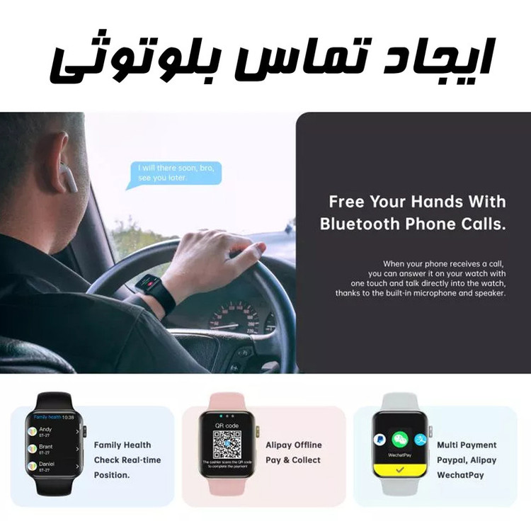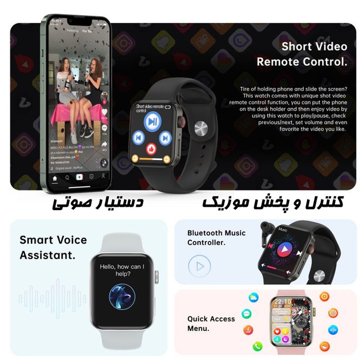 پشتیبانی از زبان فارسی در منو و سیستمعامل , صفحه نمایش رنگی , صفحه نمایش لمسی , قابلیت مکالمه از طریق بلوتوث , کنترل سطح اکسیژن خون , کنترل موسیقی (Music Player)