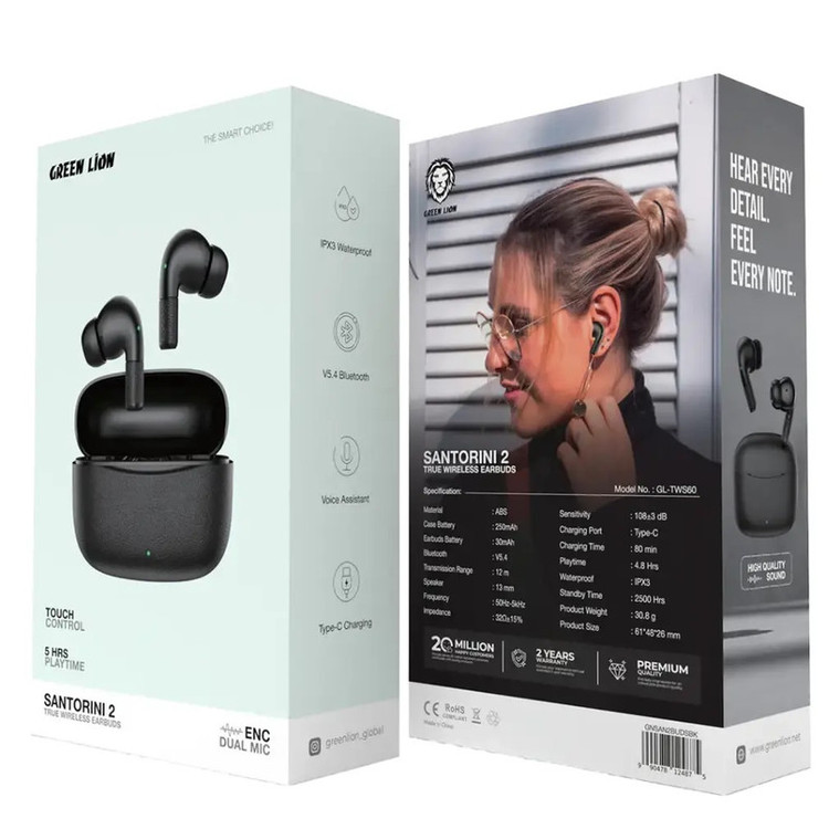 هدفونهای بیسیم Green Lion Santorini 2 (TWS) با تلفیق سبک و فناوری، تجربه شنیداری ممتازی را ارائه میدهند. این هدفونها که از جنس ABS بادوام ساخته شدهاند، دارای یک درایور بلندگوی ۱۳ میلیمتری هستند که صدای عمیقی را با محدوده فرکانس ۵۰ هرتز تا ۵ کیلوهرتز ارائه میدهند. بلوتوث نسخه ۵.۴ اتصال و انتقال آسان تا ۱۲ متر را فراهم میکند. این هدفونها با باتری ۳۰ میلیآمپر ساعتی، ۴.۸ ساعت زمان پخش ارائه میدهند و کیس شارژ ۲۵۰ میلیآمپر ساعتی، قدرت پشتیبان را فراهم میکند. آنها تنها در ۸۰ دقیقه به طور کامل شارژ میشوند و همچنین ۲۵۰۰ ساعت زمان آماده به کار باورنکردنی را ارائه میدهند. راحتی در طراحی آنها با کنترلهای لمسی، میکروفون دوگانه ENC برای بهبود تماسها و پشتیبانی از دستیار صوتی، بسیار مهم است. ضد آب بودن IPX3 دوام در ورزش یا باران ملایم را تضمین میکند و شارژ Type-C راحتی مدرن را ارائه میدهد. مناسب برای دوستداران موسیقی و متخصصان شاغل که همیشه در حال حرکت هستند.